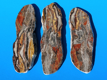 colorful Triassic limestone, polished, largest piece 24 x 7 cm